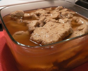 Pour leur faire une surprise, j’ai découpé mon seitan en tout petit morceaux. Tous m’ont dit que c’était excellent MAIS que ça ressemblait à de la pâté pour chat. ?