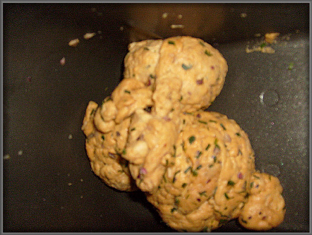 Puis pétrir au moins 30mn (je fais 2 x 15mn début de n’importe quel programme ça fait l’affaire) la boule a tendance à se séparer en plusieurs morceaux surtout au début du programme le temps que ça s’amalgame bien ensemble.