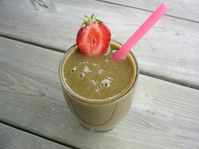 On dit qu’on savoure d’abord avec les yeux… dans le cas de ce smoothie, je conseillerais de se fier aux papilles plutôt qu’aux pupilles. Sous la couleur marécageuse, il y a une saveur de fraises fraîches relevée d’un peu de verdure qui donne l’impression d’être assis au milieu d’un champs de fraises!