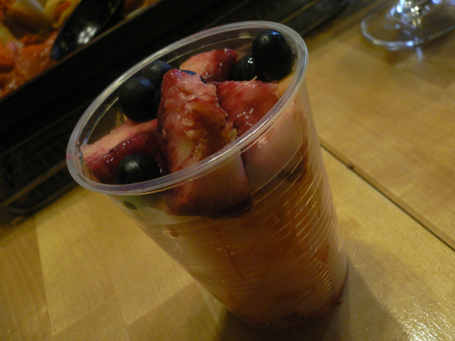 À la fin du repas nous avons mangé une fraîche salade de fruits improvisée par Loulou, très bonne avec melon, pêches et myrtilles: on n’aurait pas eu de la place pour rien d’autre J’envoie des gros bisous à Francesco et Loulou que cette fois aussi nous ont dorlotés comme seulement eux savent faire!!! ;-)