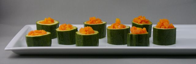 _À l’aide d’une petite cuillère à café remplir les coupelles en courgette avec les carotte et servir… ?