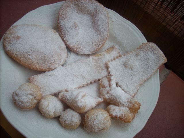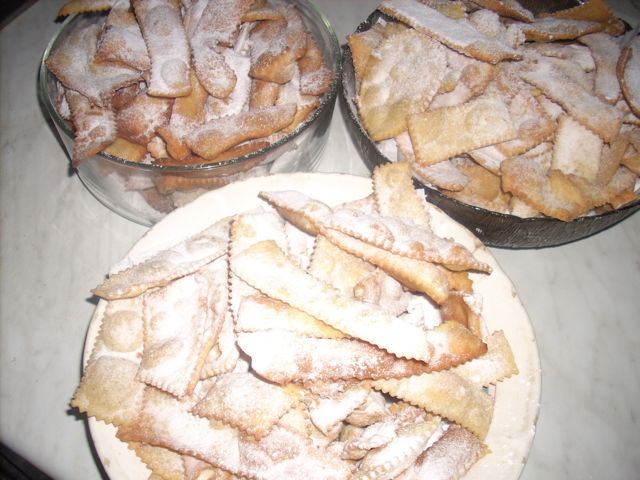 Aujourd’hui j’ai pensé: “Oh et pour le Carnaval?” Alors j’ai pensé aux “chiacchiere” ‘en français “potins”, je n’avais pas la margarine et alors j’ai utilisé l’huile.