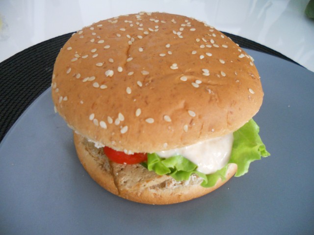 J’aime énormément les végé burgers en général. J’aime bien y mettre soit une galette de tofu (tofu mixé avec flocons d’avoine, germe de blé et divers aromates puis poélé), soit avec du tofu pané et un genre de sauce béarnaise, pour faire un genre de végé-fish-burger !