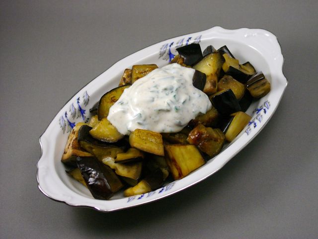 Laver les aubergines et couper la partie verte et dure, les couper en morceaux assez grands et les faire revenir dans une poêle avec l’huile jusqu’à ce qu’elles seront dorée et bien cuites.
