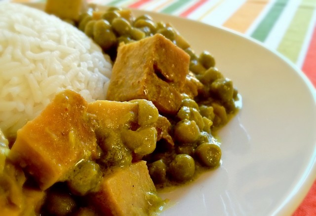 Couper en cubes plutôt gros le seitan et l’assaisonner avec huile, petits pois, sel et poivre selon vos goûts et le sauter à la poêle 5 minutes. Ajouter le lait de coco et quand la sauce commencera à s’épaissir ajouter le curry en réglant la quantité selon vos préférences et la texture que vous désirez pour votre sauce. Servir avec le riz basmati nature ou parfumé (cannelle, badiane, clous de girofle, cardamome, cumin etc.), après ça s’étaler sur le canapé comme des phoques échouées en se léchant les babines! Salut!