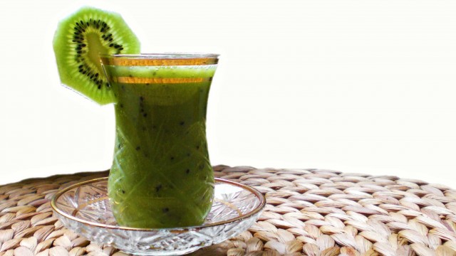 Munissez vous d’un broyer à immersion (maltraiter les fruits le matin avec cet électroménager vous rendra sadiquement heureux) et faite-le marcher jusqu’à avoir un mélange vert brillant, à boire tout de suite, si vous voulez avec une paille, qui fait très “vacance”, même en hiver avec le brouillard le matin avant d’aller travailler.